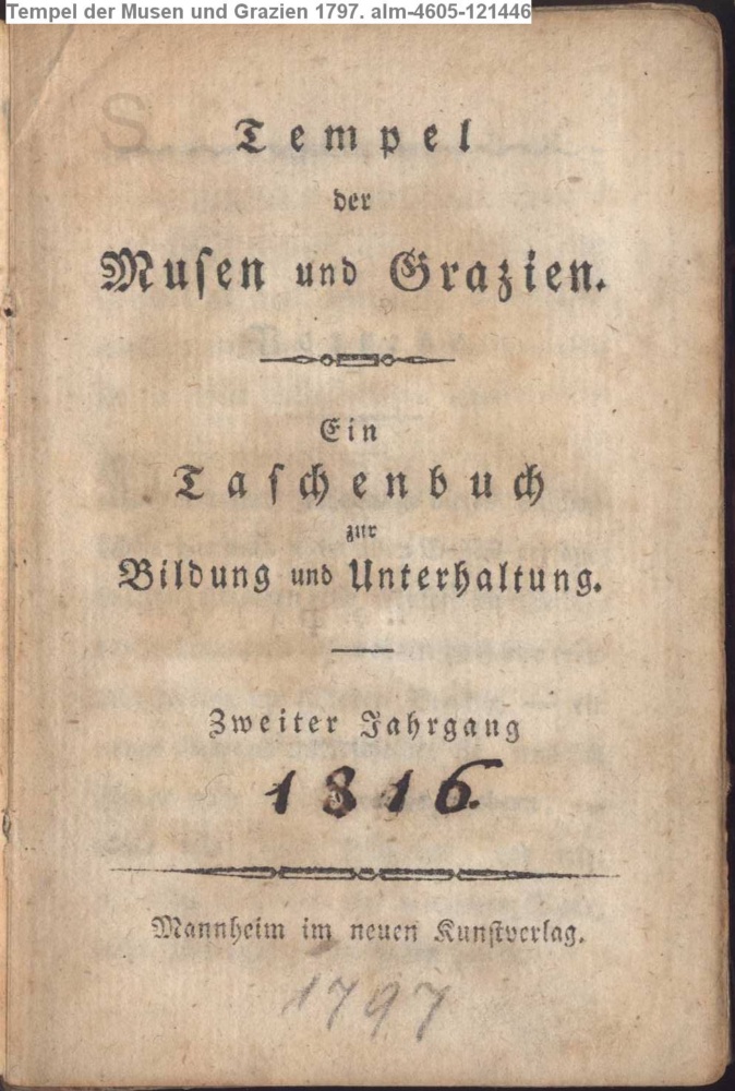 Tempel / der Musen und Grazien. / Ein / Taschenbuch / zur / Bildung und Unterhaltung. / Zweiter Jahrgang / # / Mannheim im neuen Kunstverlag