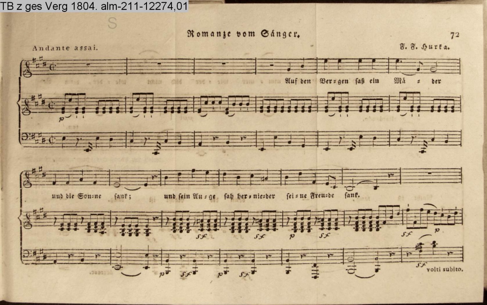 Vertonung des Gedichts »Romanze vom Sänger« von G. A. H. Gramberg