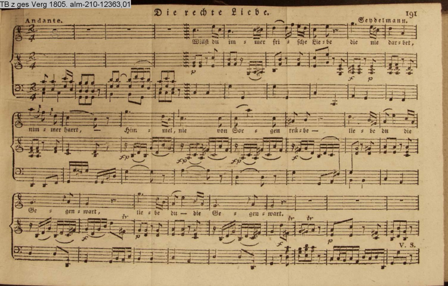 Vertonung des Gedichts »Die rechte Liebe« von G. A. H. Gramberg.