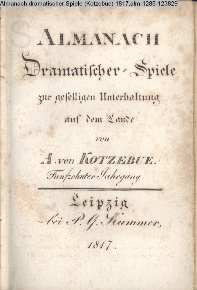 Almanach dramatischer Spiele zur geselligen Unterhaltung auf dem Lande 1817, Nr. 123829