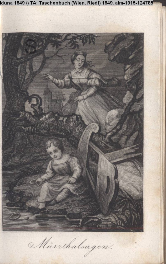 Graphik im Kalendarium August; Illustration zu »Mürzthalsage« von J. G. Seidl