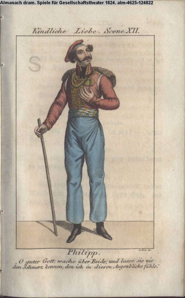 Kindliche Liebe. Scene XII. / Philipp. / »O guter Gott, wache über Beide, und lasse sie nie / den Schmerz kennen, den ich in diesen Augenblicke fühle«