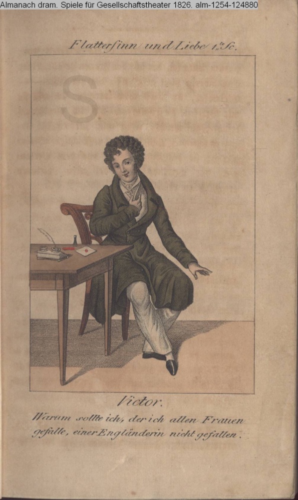 Flattersinn und Liebe 1te Sc. / Victor: / Warum sollte ich, der ich allen Frauen / gefalle, einer Engländerin nicht gefallen.