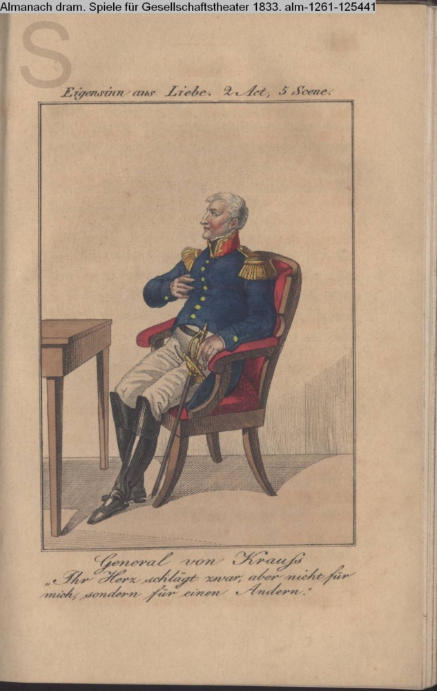 Eigensinn aus Liebe. 2 Act, 5 Scene. / General von Krauß / »Ihr Herz schlägt zwar, aber nicht für / mich, sondern für einen anderen.«