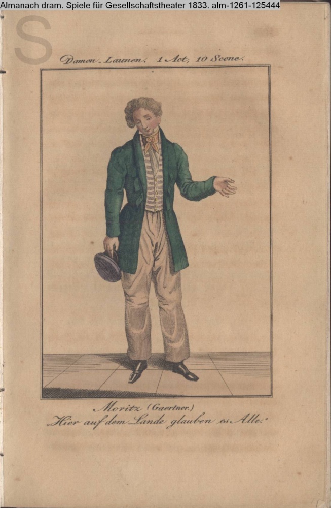 Damen-Launen. 1 Act, 10 Scene. / Moritz (Gaertner) / »Hier auf dem Lande glauben es Alle.«