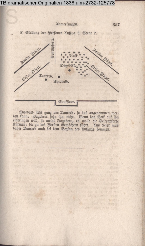 Wo dieses Stück aufgeführt wird, da muß ich bitten, die Scene des zweiten Aufzugs und die Stellung der Personen genau nach meiner Anweisung und nach nebenstehender Zeichnung zu ordnen.…