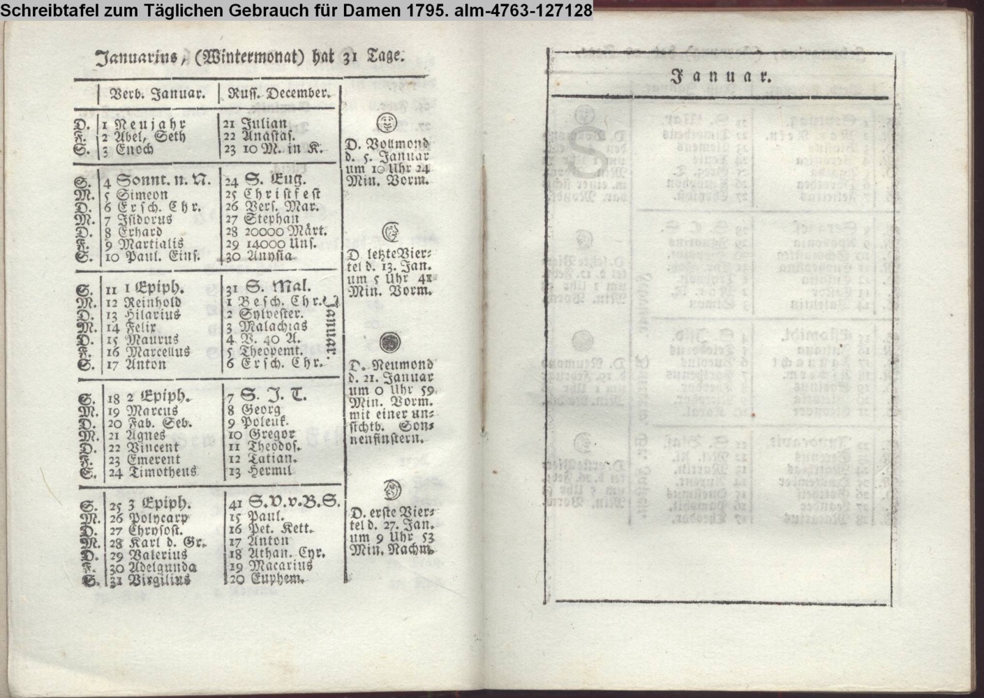 1. Blatt im Kalendarium von 12