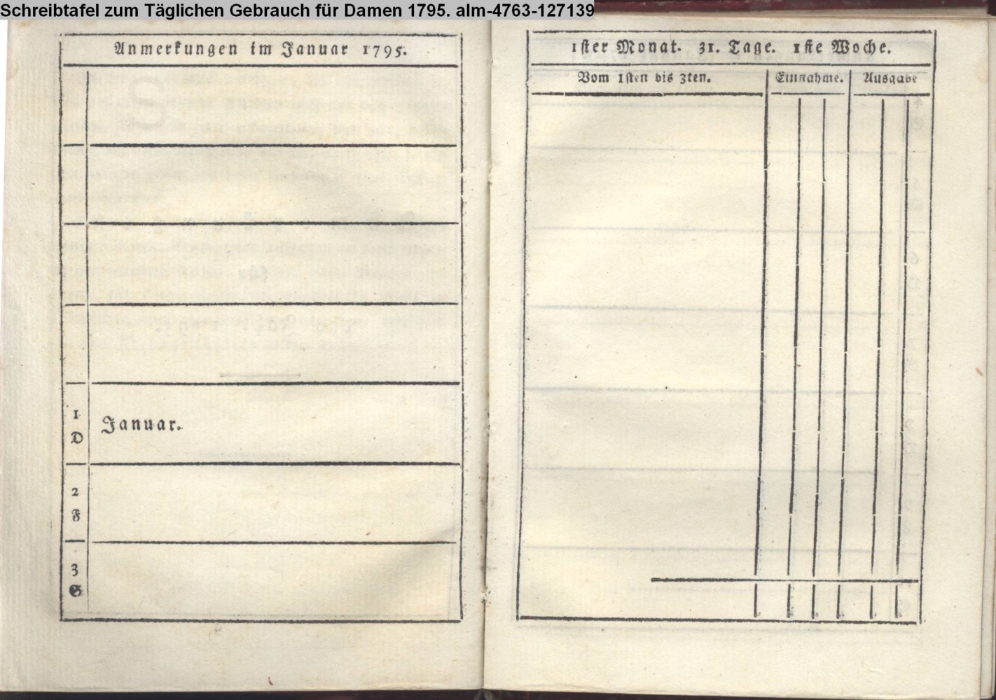 Schreibtafel zum täglichen Gebrauch für Damen 1795, Nr. 127139