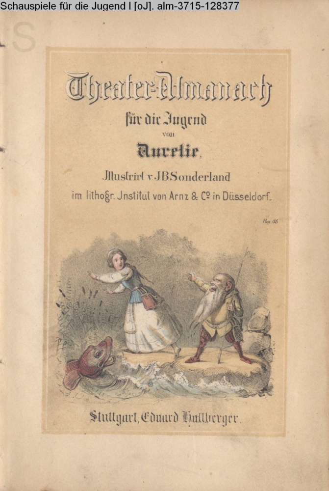 Theater-Almanach / für die Jugend / von Aurelie. / Illustrirt v. J. B. Sonderland / im lithogr. Institut von Arnz & Co. in Düsseldorf. / Stuttgart, Edmund Hallberger