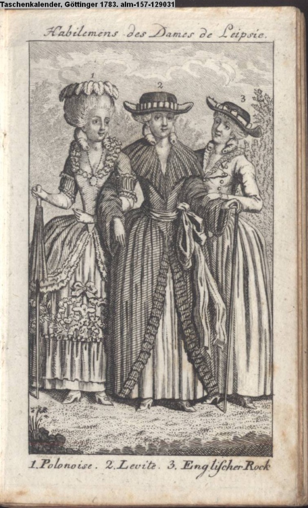 Habilemens des Dames de Leipsic. / 1. Polonoise. 2. Levite. 3. Englischer Rock