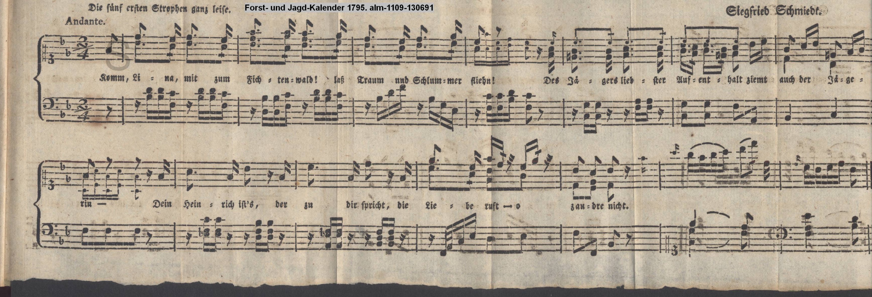 auszufaltende Musikbeigabe; Vertonung des Gedichts »Der Jäger und sein Liebchen« von J. Voigt