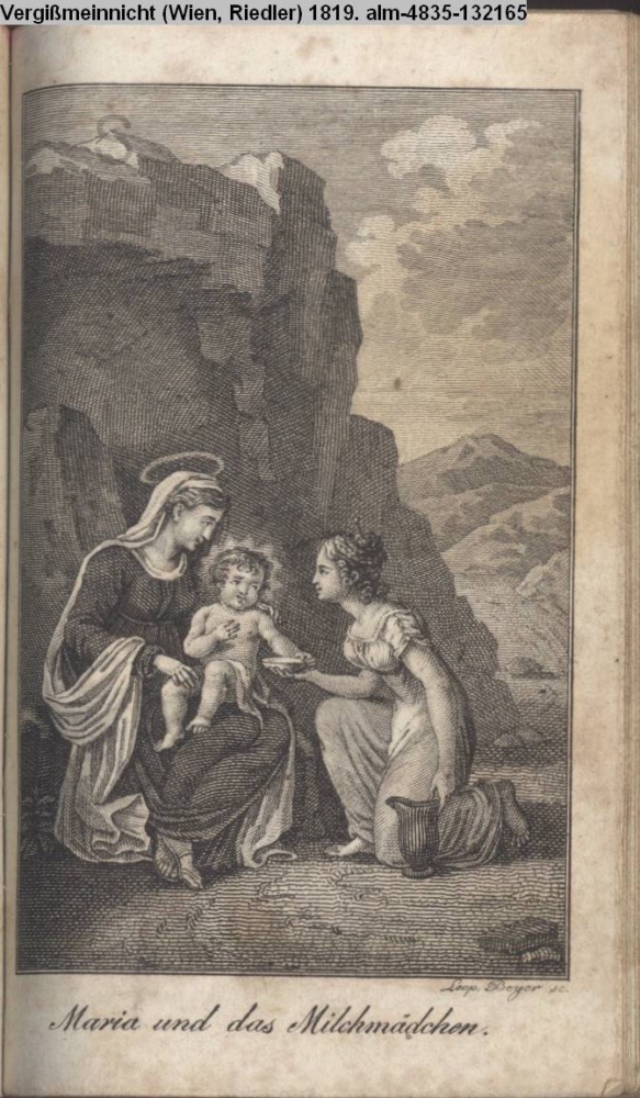 Diese Graphik zuerst in: Cornelia1818. »Maria und das Milchmädchen« Bez.: C. Heideloff gez. L. Portmann gest.