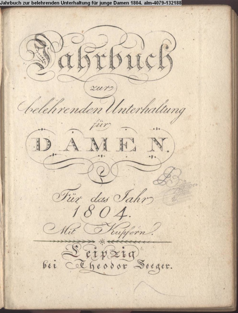 Jahrbuch / zur / belehrenden Unterhaltung / für / DAMEN / Für das Jahr / 1804. / Mit Kupfern / Leipzig / bei Theodor Seeger