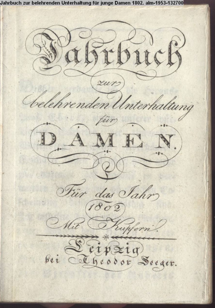 Jahrbuch / zur / belehrenden Unterhaltung / für / DAMEN / Für das Jahr / 1802 / Mit Kupfern / Leipzig / bei Theodor Seeger