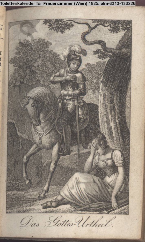 Graphik im Kalendarium September; Illustration zu »Das Gottes-Urtheil« von A. W. Schreiber