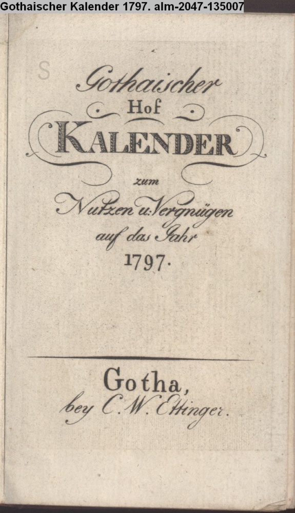 Gothaischer / Hof / KALENDER / zum / Nutzen und Vergnügen / auf das Jahr / 1797. / Gotha, / bey C. W. Ettinger