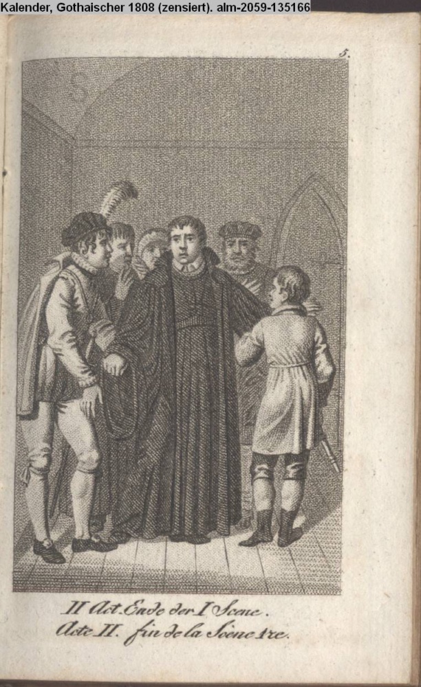 Graphik im Kalendarium Januar (unbezeichneter Neustich) nummeriert 5; Illustration zu »Martin Luther oder die Weihe der Kraft« von Zacharias Werner