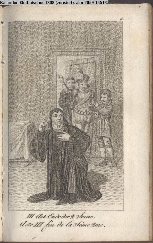 Graphik im Kalendarium Februar (unbezeichneter Neustich) nummeriert 6; Illustration zu »Martin Luther oder die Weihe der Kraft« von Zacharias Werner