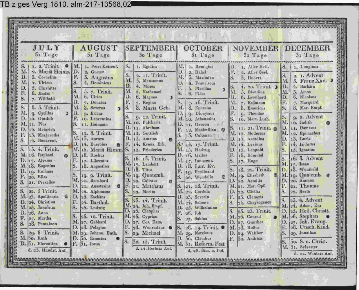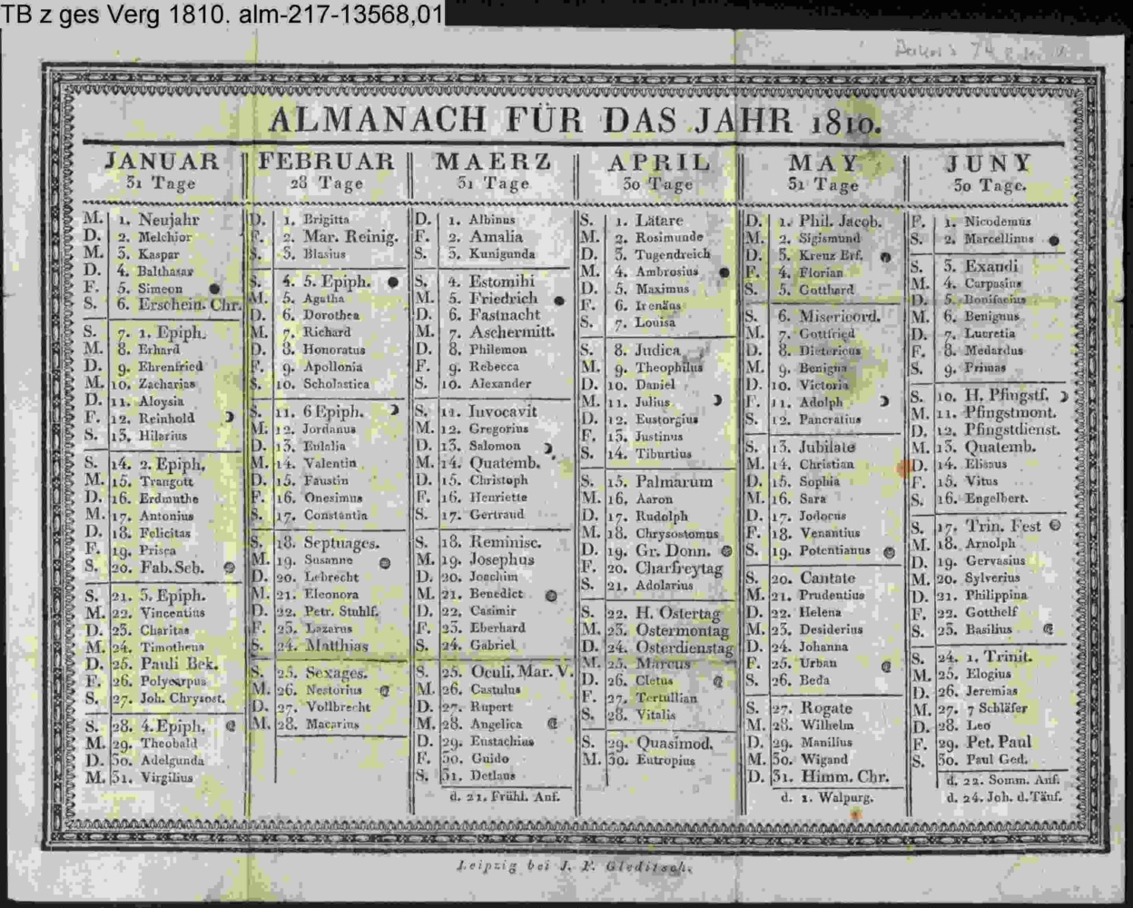 ALMANACH FÜR DAS JAHR 1810