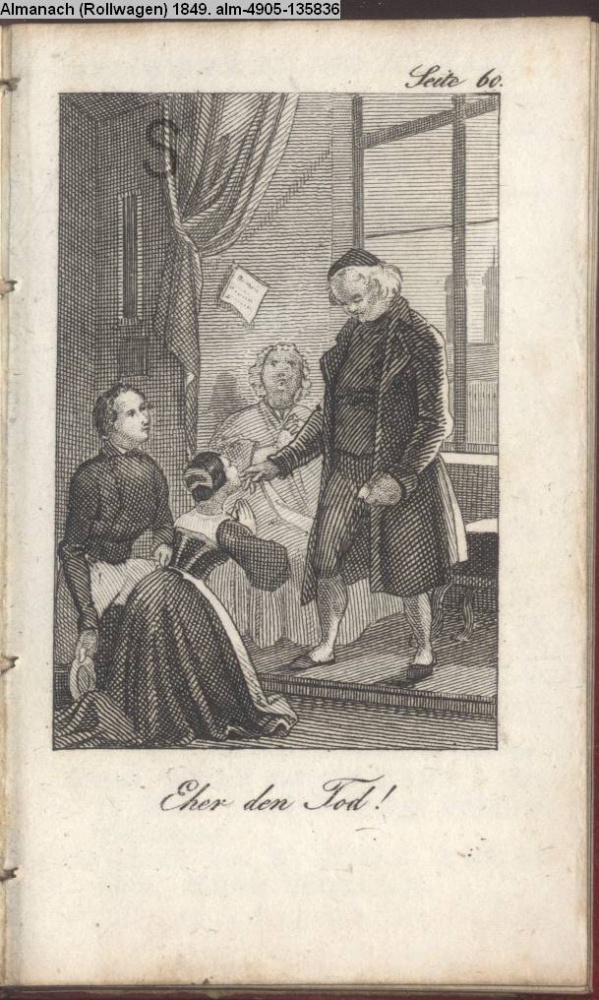 Graphik im Kalendarium Dezember über der Graphik Ste. 56; Illustration zu »Die Quaterne. Münchner Lokalschwank« von F. A. Oldenburg