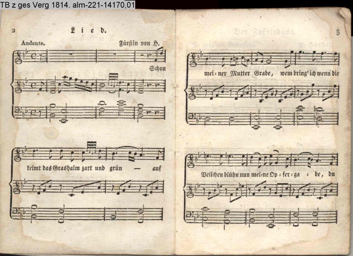 Anhang / zu Beckers Taschenbuch 1814 / enthaltend: / Compositionen und Tänze, / von / Amon, Bergt, Fürstin von H., A. Harder / und Meyer. / Dieser Anhang zu Beckers Taschenbuche wird weder einzeln / verkauft, noch von demselben getrennt.