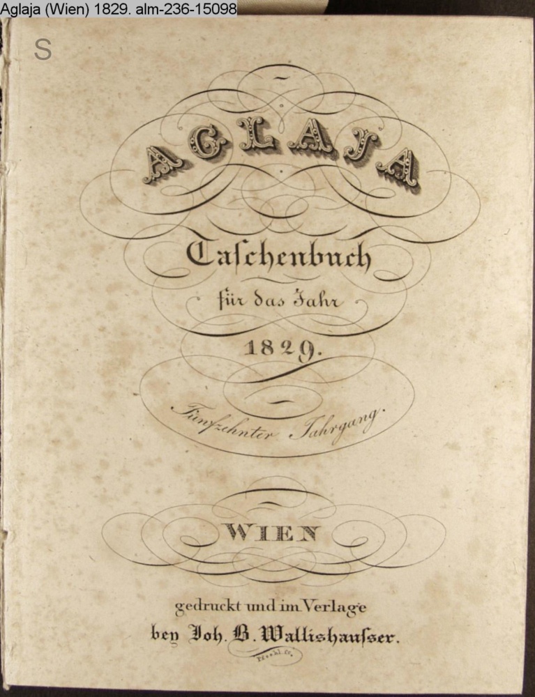 AGLAJA / Taschenbuch / für das Jahr / 1829. / Fünfzehnter Jahrgang. / WIEN / gedruckt und im Verlage / bey Joh. B. Wallishauser