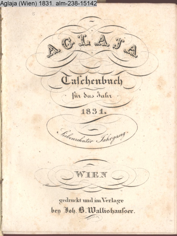 AGLAJA / Taschenbuch / für das Jahr / 1831. / Siebenzehnter Jahrgang. / WIEN / gedruckt und im Verlage / bey Joh. B. Wallishauser