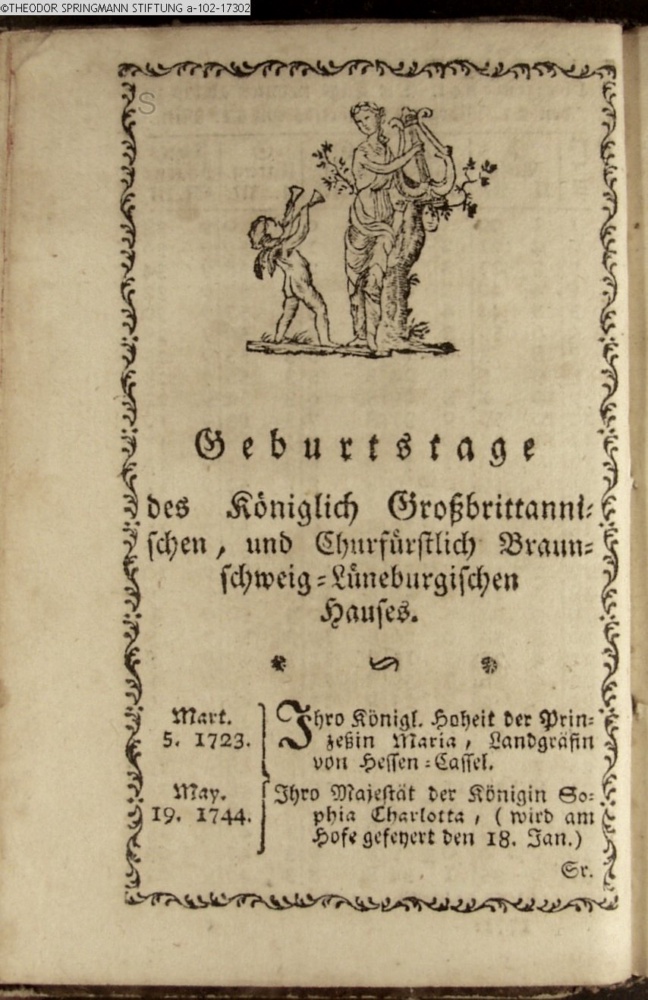Geburtstage / des Königlich Großbrittanni- / schen, und Churfürstlich Braun- / schweig-Lüneburgischen / Hauses