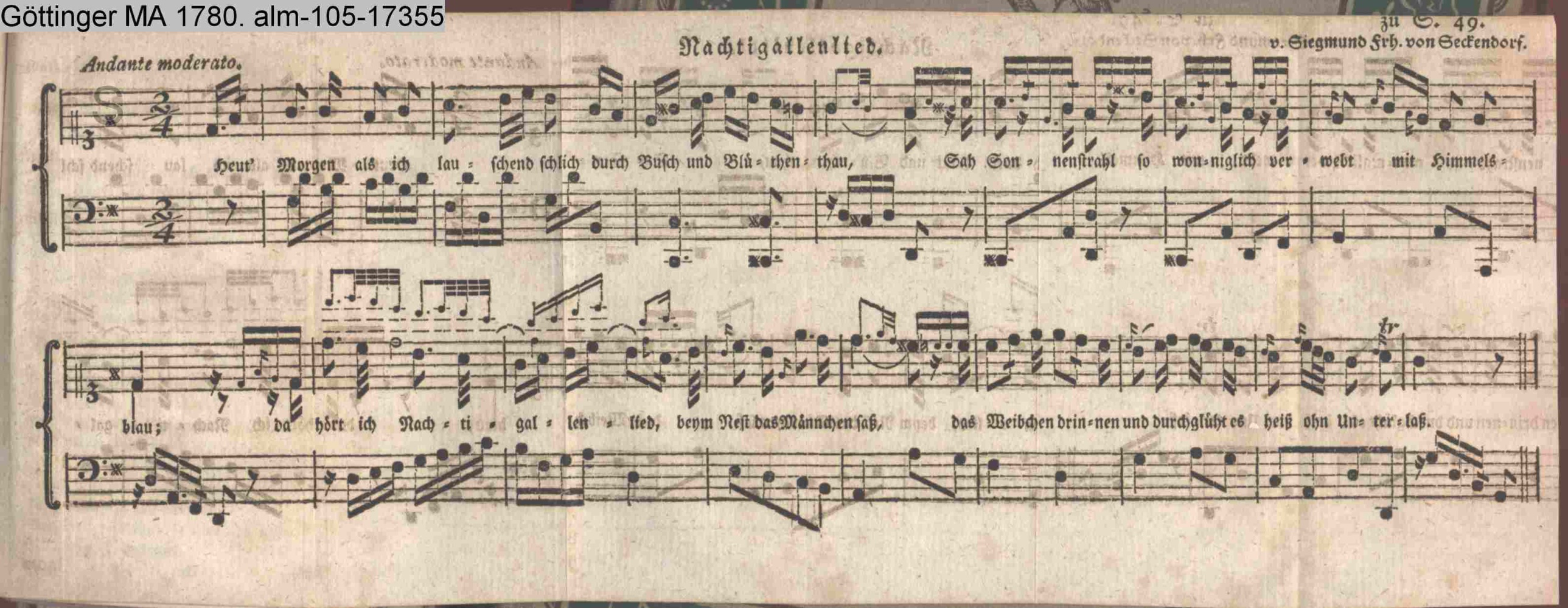 Vertonung des Gedichts »Nachtigallenlied« von Bertuch