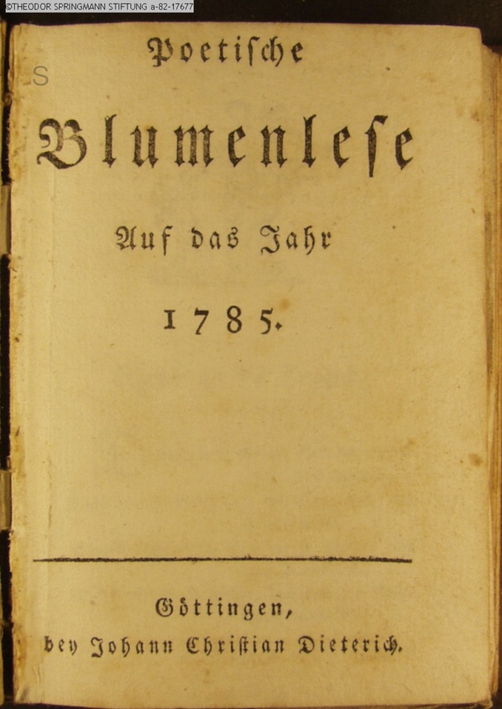 Poetische / Blumenlese / Auf das Jahr / 1785. / Göttingen, / bey Johann Christian Dieterich