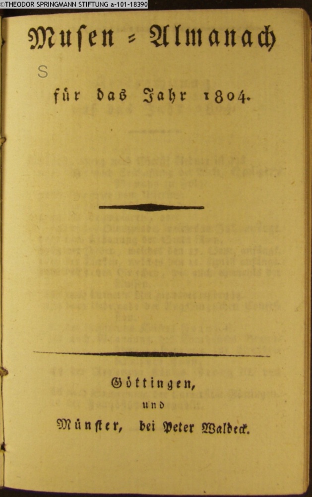 Musen-Almanach / für das Jahr 1804. / Göttingen / und / Münster, bei Peter Waldeck