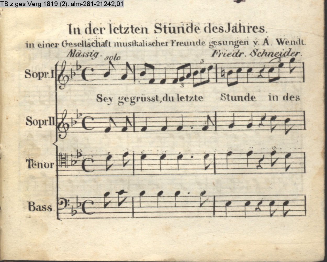INr 21237, Obj 131) Vertonung des Gedichts »In der letzten Stunde des Jahres in einer Gesellschaft musikalischer Freunde gesungen« von A. Wendt