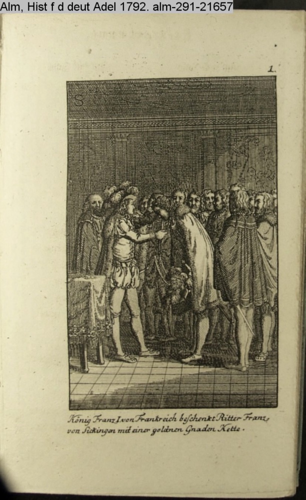König Franz I. von Frankreich beschenkt Ritter Franz / von Sickingen mit einer goldnen Gnaden Kette