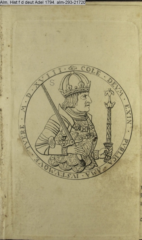 Historischer / Almanach / für / den deutschen Adel / und / für Freunde der Geschichte desselben / 1794. / Ritter / Göz von Berlichingen, / mit der eisernen Hand. / von / Carl Lang. / mit Kupfern von Küffner, Lang u. a. / Frankfurt am Main, / bey Philip Heinrich Guilhauman
