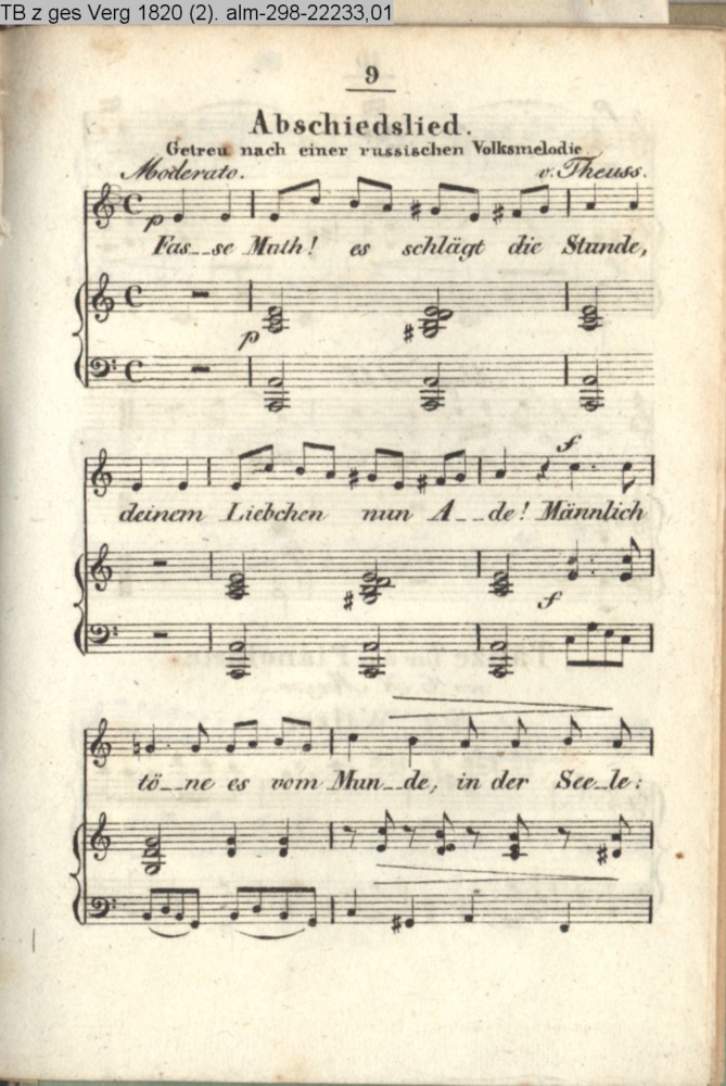 Musik zu dem Taschenbuch zum geselligen Vergnügen auf das Jahr 1820 (Sammlung INr 22229, Obj 118) (Photos 22232,01; 22232,02)