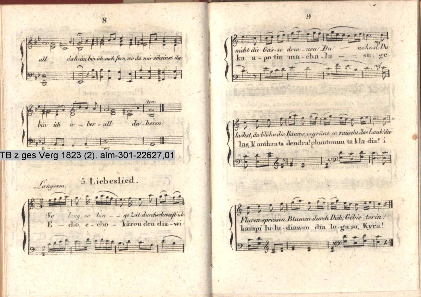 Musik-Beilage zu dem Taschenbuch zum geselligen Vergnügen 1823. Enthaltend Neugriechische Melodien Leipzig, bei Joh. Friedr. Gleditsch (Sammlung