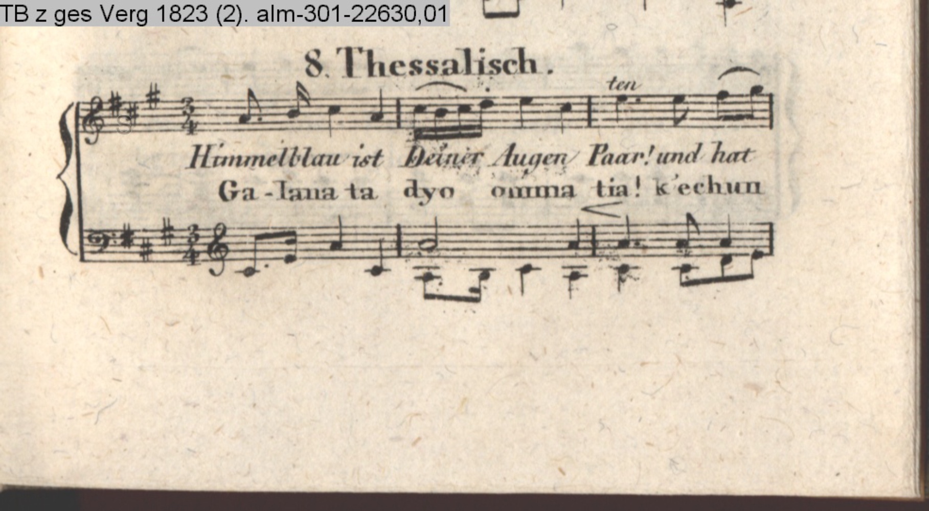 Musik-Beilage zu dem Taschenbuch zum geselligen Vergnügen 1823. Enthaltend Neugriechische Melodien Leipzig, bei Joh. Friedr. Gleditsch (Sammlung