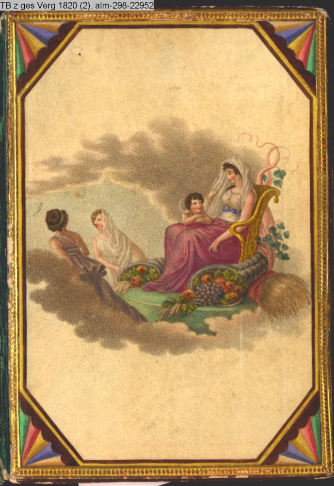 aufwendig kolorierte Umschlaggraphik r. mit montierter Goldleiste. Zum Vergleich ist die Abbildung der Umschlaggraphiken bei Lanckoronska/Rümann, Abbildungsteil S. 85 als Vollbild beigegeben