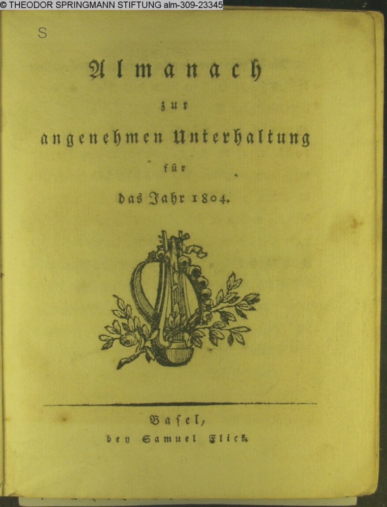 Almanach / zur / angenehmen Unterhaltung / für / das Jahr 1804. / Basel, / bey Samuel Flick