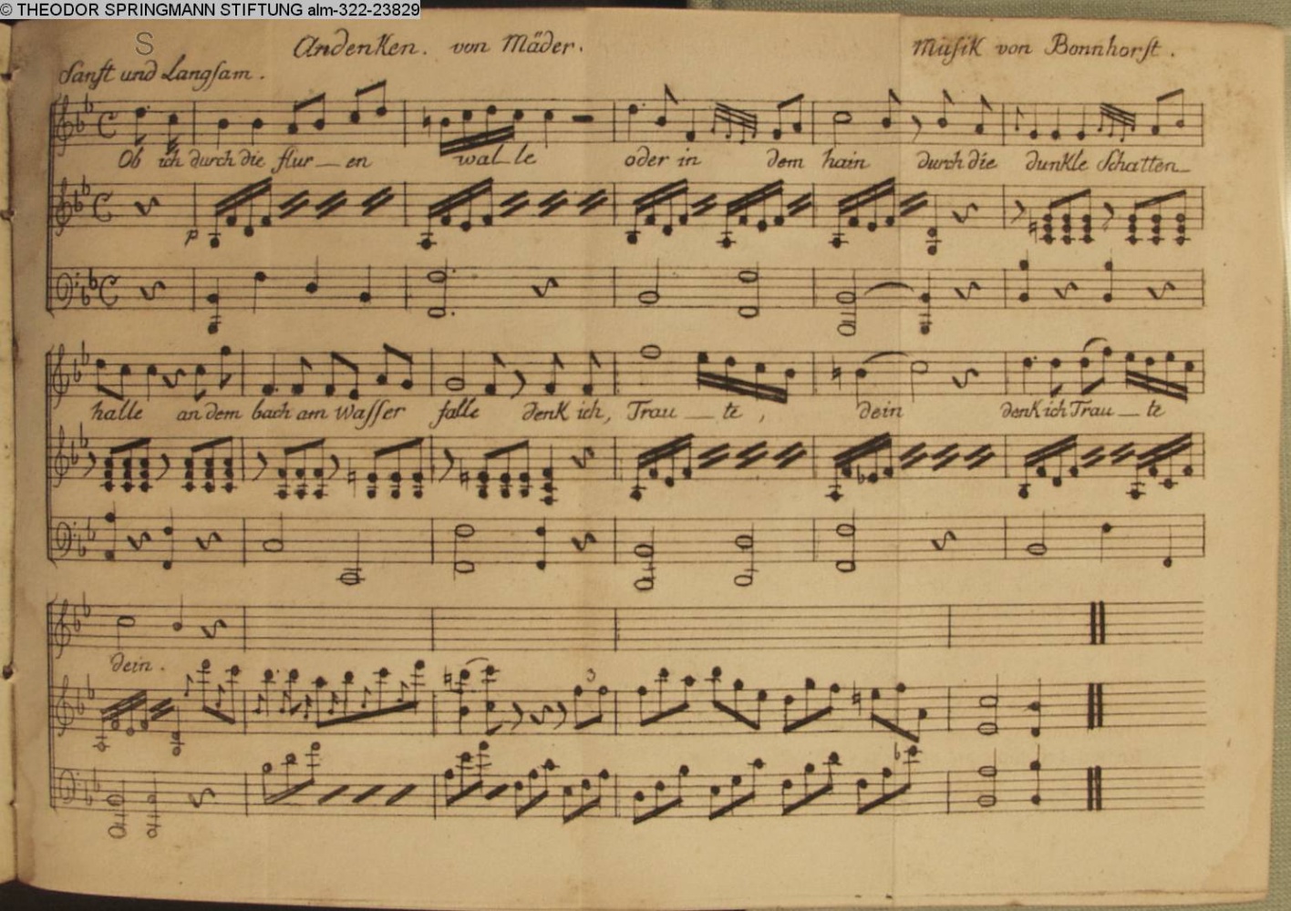 Vertonung des Gedichts »Andenken an Sie.« von Mäder
