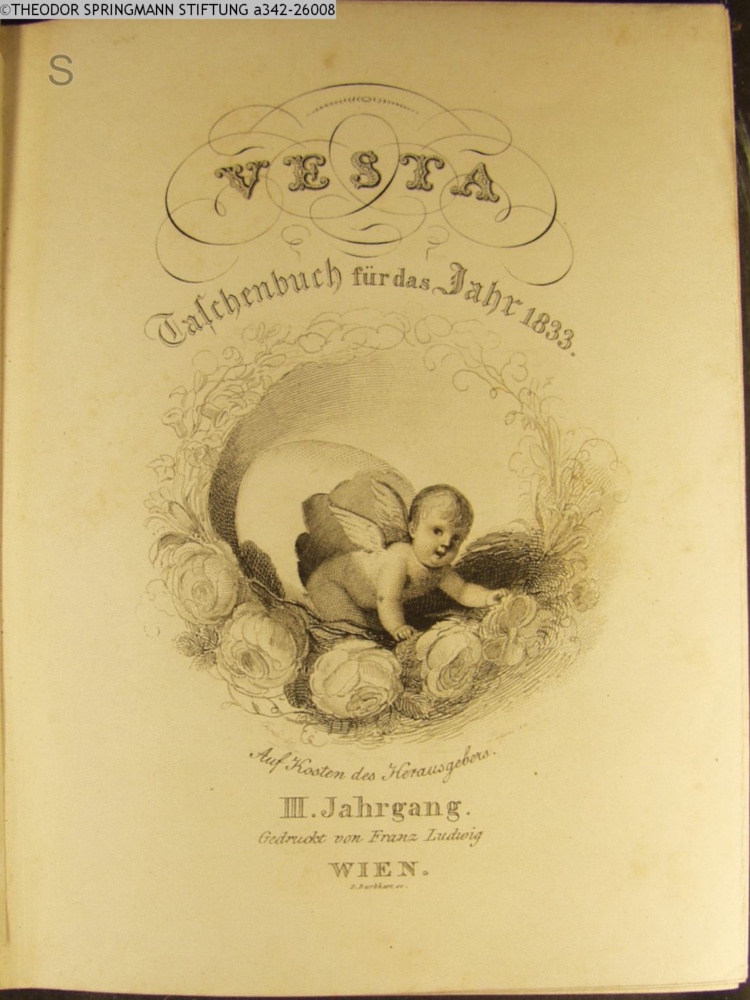 VESTA / Taschenbuch für das Jahr 1833. / Auf Kosten des Herausgebers. / III. Jahrgang / gedruckt von Franz Ludwig / WIEN