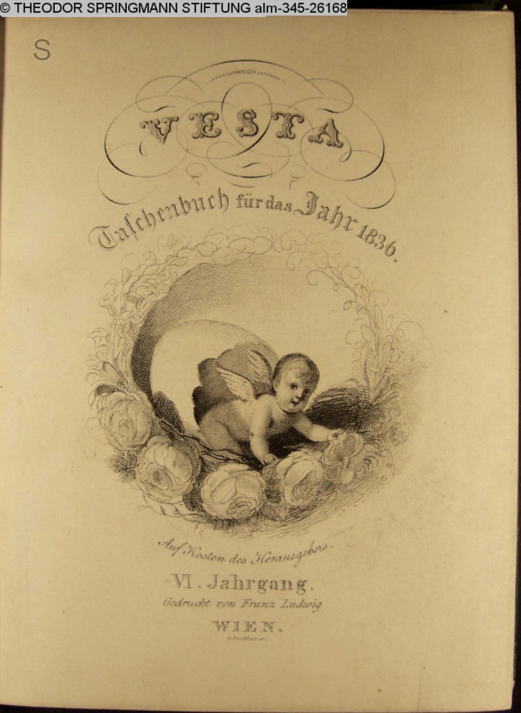 VESTA / Taschenbuch für das Jahr 1836. / Auf Kosten des Herausgebers. / VI. Jahrgang. / Gedruckt von Franz Ludwig / WIEN