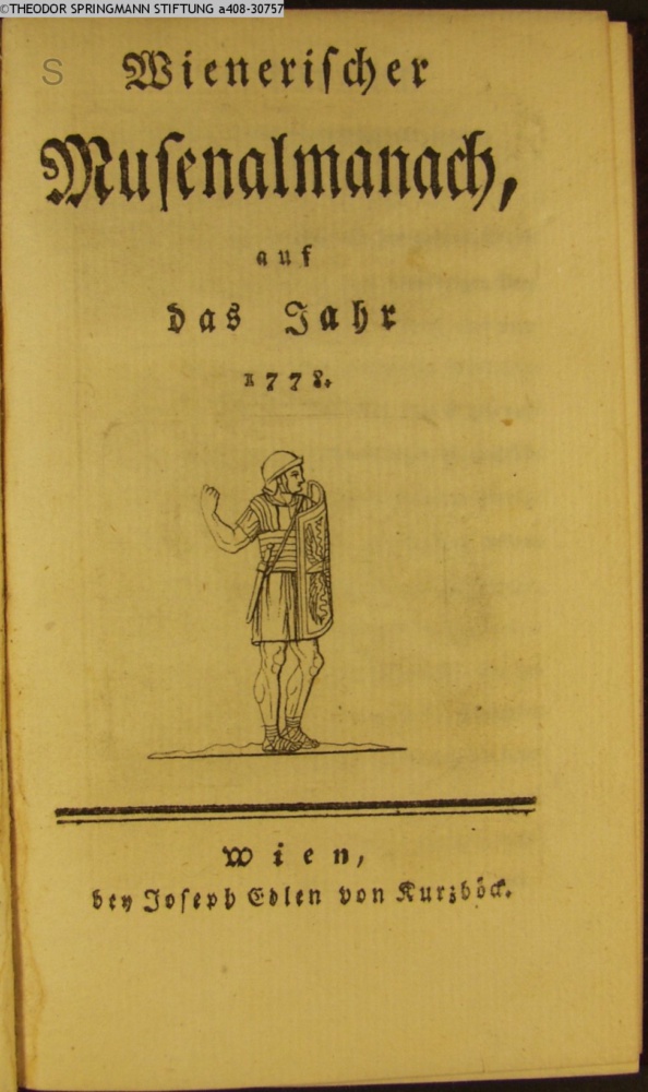 Wienerischer / Musenalmanach, / auf / das Jahr / 1778. / Wien, / bey Joseph Edlen von Kurzböck