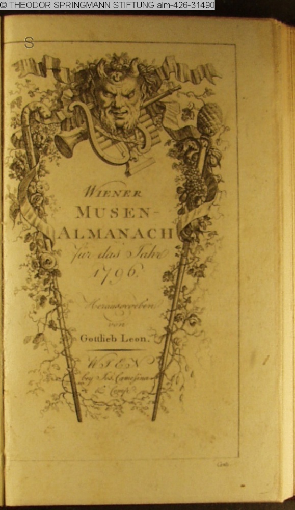 WIENER / MUSEN- / ALMANACH / für das Jahr / 1796. / Herausgegeben / von Gottlieb Leon. / WIEN / bey Jos. Camesina / & Comp.