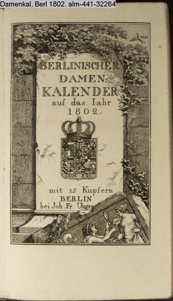 BERLINISCHER / DAMEN- / KALENDER / auf das Jahr / 1802. / mit 15 Kupfern / BERLIN / bei Joh. Fr. Unger