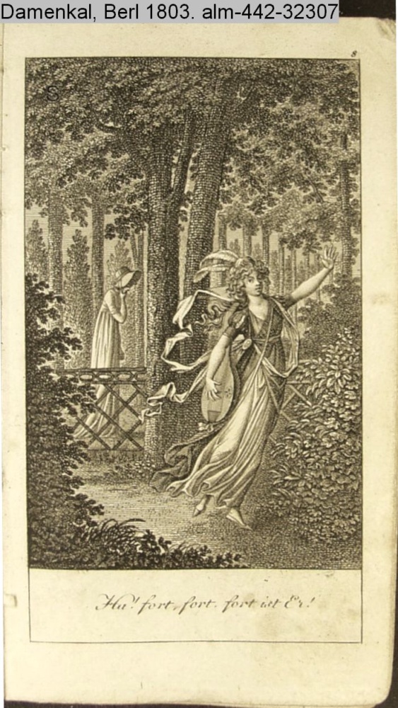 Graphik im Kalendarium paginiert 8. Illustration zu »Rosalie und Nettchen« s. Textbezug INr 32322, Obj 26