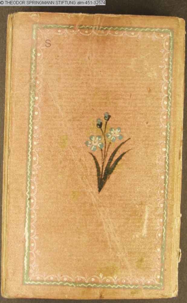Umschlaggraphik v. Verlagsbroschur mit koloriertem Blumenschmuck im Rahmen