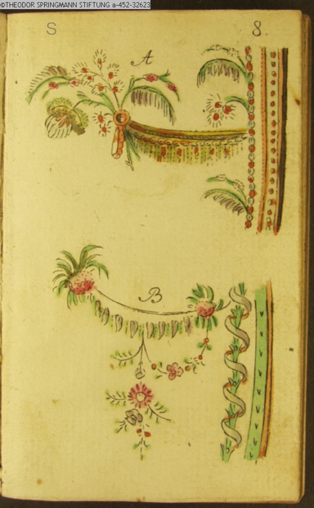 Graphik im Kalendarium paginiert 8. (koloriertes Stickmuster) s. Textbezüge