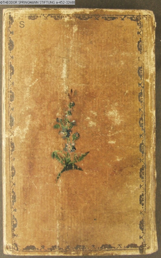 Umschlaggraphik v. Verlagsbroschur mit koloriertem Blumenschmuck im Rahmen
