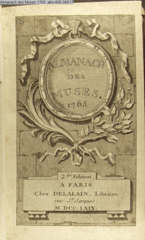 ALMANACH / DES / MUSES. / 1765 / 2de. Edition / A PARIS / Chez DELALAIN, Libraire, / rue St. Jacques. / M.DCC.LXIX